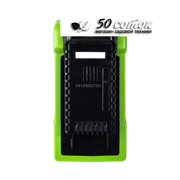 Этот аккумулятор совместим с инструментами Greenworks, что делает его идеальным выбором для тех, кто уже использует продукцию этой марки. Благодаря слайдерному способу крепления, установка и снятие аккумулятора становятся простыми и удобными.