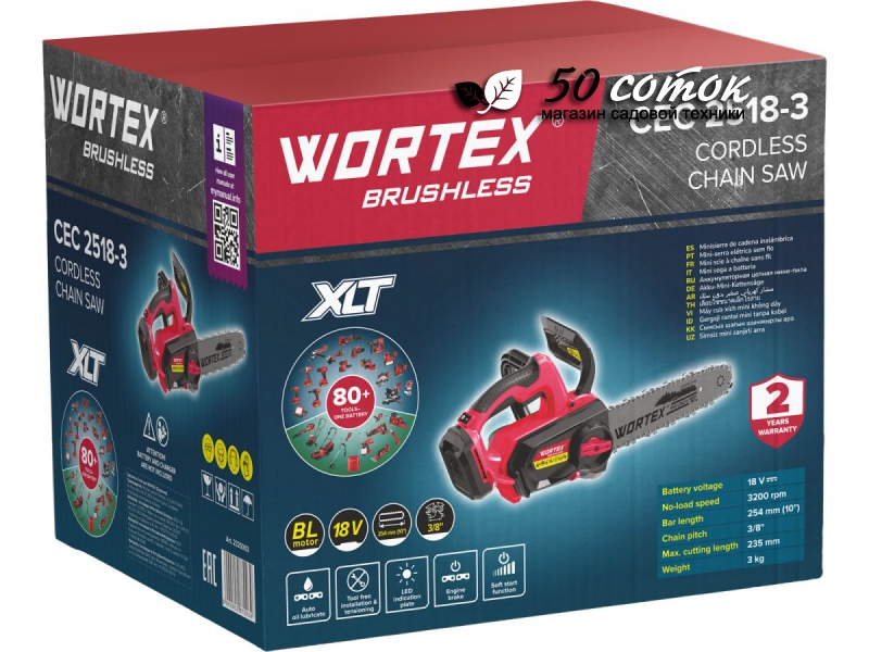 Аккумуляторная пила WORTEX CEC 2518-3 SOLO без аккумул., код (24044)