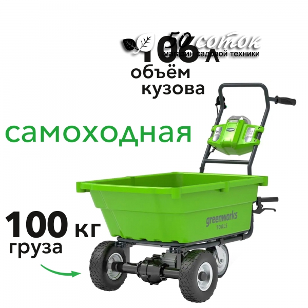 Аккумуляторная садовая тележка GreenWorks G40GC 40В G-MAX DigiPro имеет