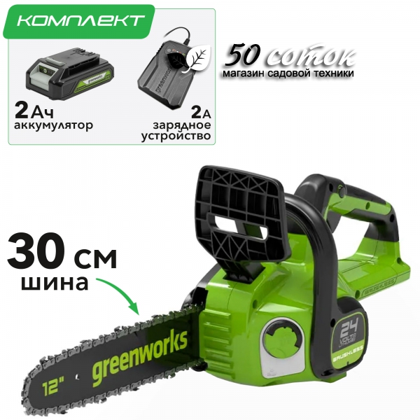Цепная пила Greenworks GD24CS30 24V 2007007 (30 см) бесщеточная аккумуляторная — мощная компактная пила с бесщеточным двигателем!