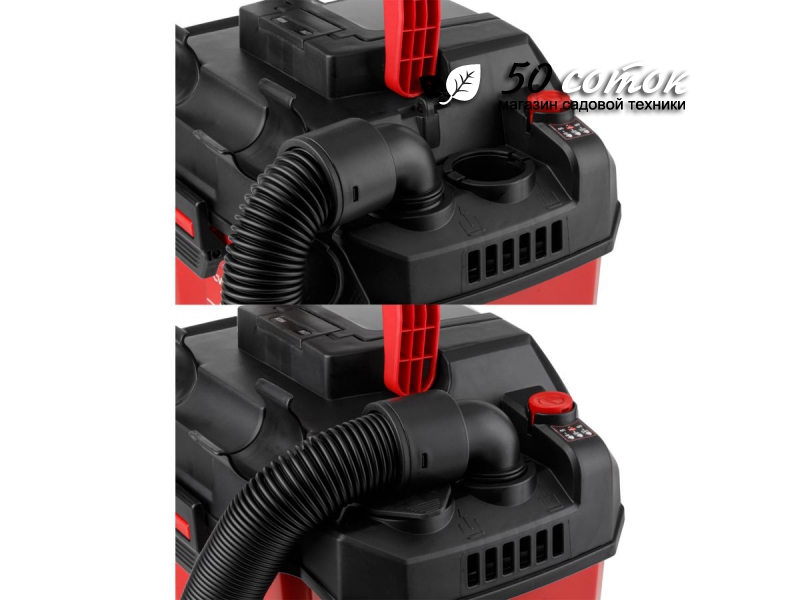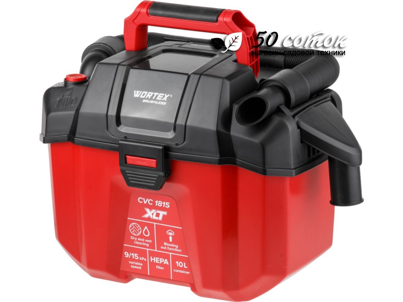 Пылесос WORTEX CVC 1815 оснащен мощным бесщеточным двигателем, что продлевает срок службы как самого инструмента, так и аккумуляторов в 2 раза; снижает энергопотребление на 50%; делает инструмент компактнее, а работу продуктивнее; исключает необходимость замены угольных щеток. Мощный, автономный и многофункциональный пылесос для комплексной уборки любого типа загрязнений. Он идеально подходит для строительства, ремонта, а также для повседневной уборки, автомобильной уборки и уборки в местах без доступа к электричеству. Объемный (10 л) контейнер для мусора выполнен из толстого, ударопрочного пластика, устойчив к коррозии и механическим воздействиям. Растягивающийся мягкий шланг, увеличивающийся в длине до 150 см позволяет проводить уборку в удалённых местах и в ограниченном пространстве, а компактный размер и малый вес позволяют переносить пылесос на плече при помощи удобного ремня в комплекте. Пылесос (крыльчатка) развивает разрежение до 15 кПа (150 мбар), с легкостью справляясь с крупным строительным мусором, пылью и опилками. Воздушный поток достигает 12 л/с, обеспечивая высокую эффективность уборки, а две скорости работы позволяют оптимизировать энергопотребление для разных задач. Режимы работы: Сухая уборка: Идеален для уборки после ремонта (строительная пыль, мусор, стружка). Сбор жидкостей: Специальный режим для сбора жидкости с защитой от переполнения (пылесос отключится, когда объем жидкости внутри достигнет 3-х литров). Функция обдува: Мощный поток воздуха удобен для очистки труднодоступных мест или удаления пыли и стружки с рабочих поверхностей. Время работы от аккумулятора 4 А*ч составляет 30 мин на 1-й скорости и 15 мин на 2-й скорости. Из-за конструктивных особенностей пылесоса, аккумулятор WORTEX CBL 1860 емкостью 6 Ач не подходит для использования с устройством (аккумулятор не помещается в посадочное из-за высоты).
