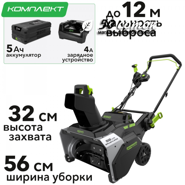 Аккумуляторный снегоуборщик Greenworks 82SN22K5 82В 2603307UB (в комплекте АКБ + ЗУ), код (23209)