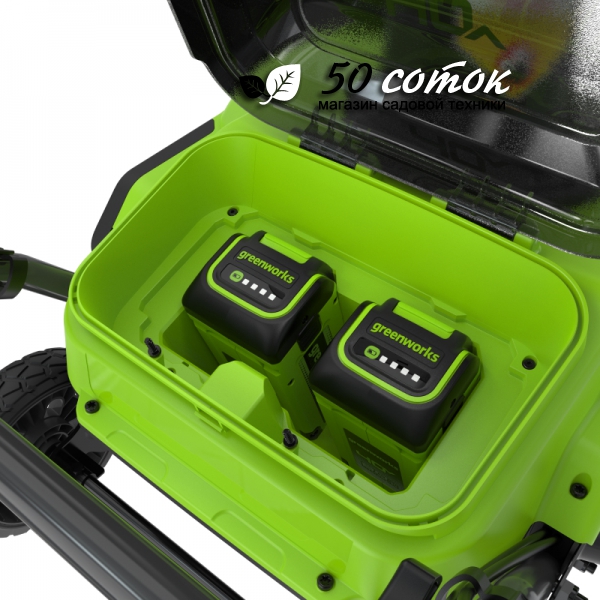 Модель работает от аккумуляторов 40V, совместимых со всеми устройствами Greenworks G-MAX 40V. Линейка настолько широка, что в ней найдутся инструменты для большинства видов садовых работ.