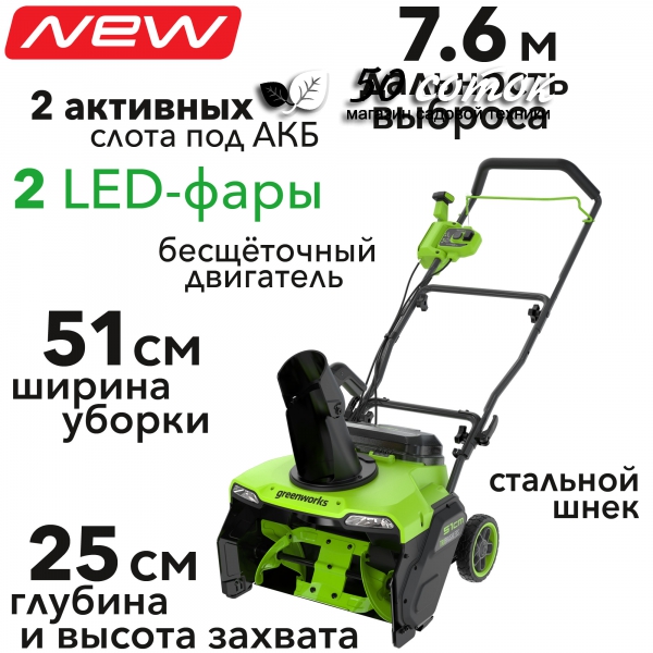 - Снегоуборщик бесщёточный 51 см Greenworks GD40STX2 40V (арт. 2603407)