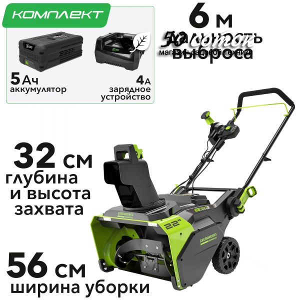 Аккумуляторный снегоуборщик GreenWorks GD82STK5 82В DigiPro, код (16947)