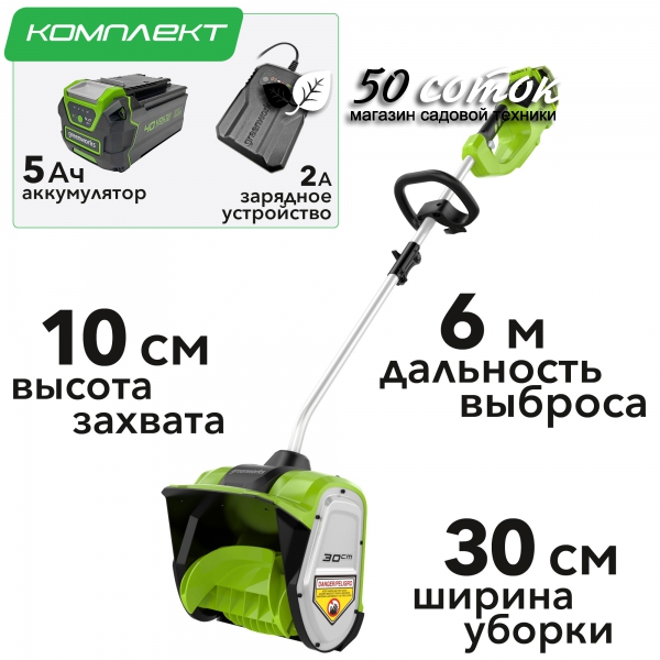 Аккумуляторный снегоуборщик-снеголопата Greenworks GD40SSK5 40 В, код (21855)