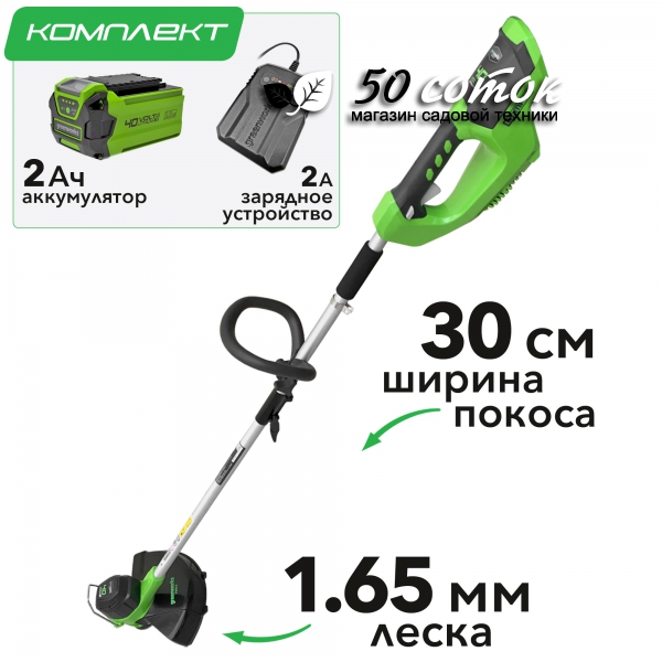 Аккумуляторный триммер GreenWorks G40LTK2 40В G-MAX