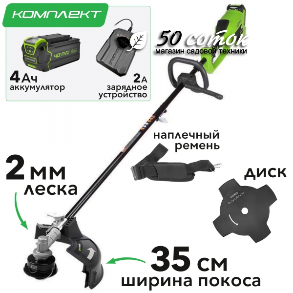 Аккумуляторный триммер GreenWorks GD40BCK4 40В G-MAX DigiPro