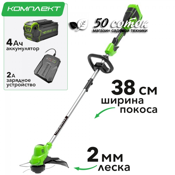 Триммер аккумуляторный Greenworks GD40LT, Арт. 2112207, 40V, 38 см,