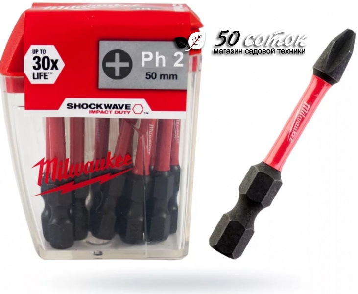Бита ударная MILWAUKEE SHOCKWAVE PH2 50 мм (10 шт.), код (10170)