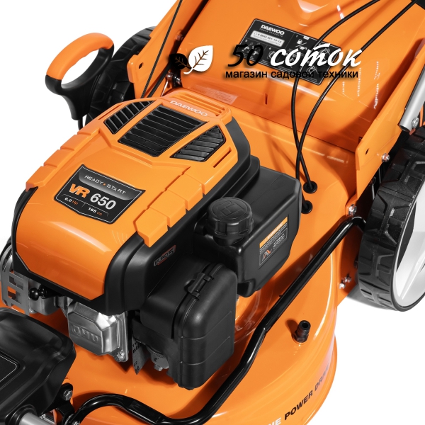 - Бензиновый двигатель DAEWOO. 4-х тактный бензиновый двигатель DAEWOO series VR 650, объемом 165 см3 специально разработан для садовой техники. Он отличается надежностью и увеличенным моторным ресурсом, более низким уровнем шума и вибрации.