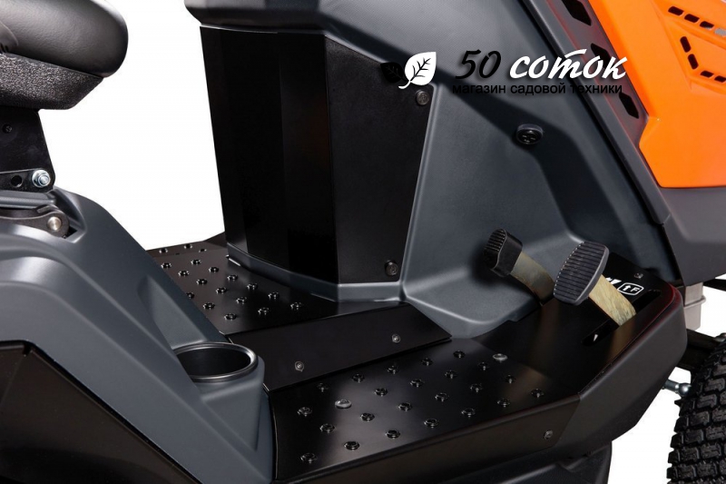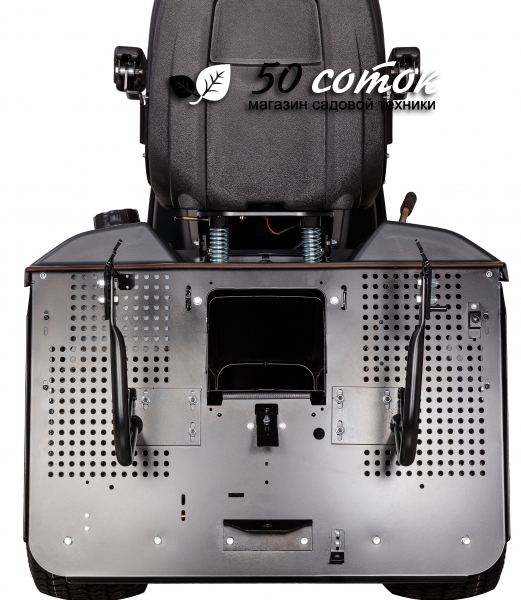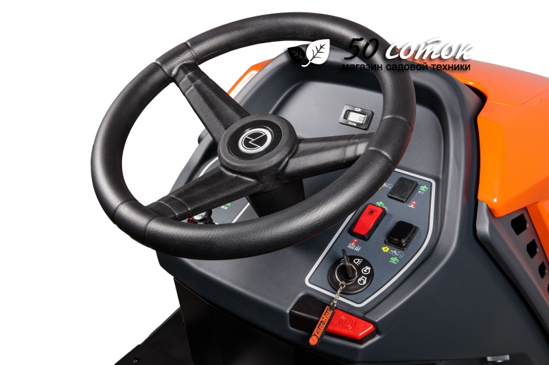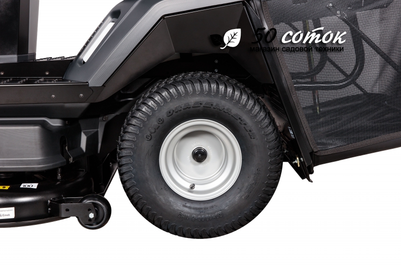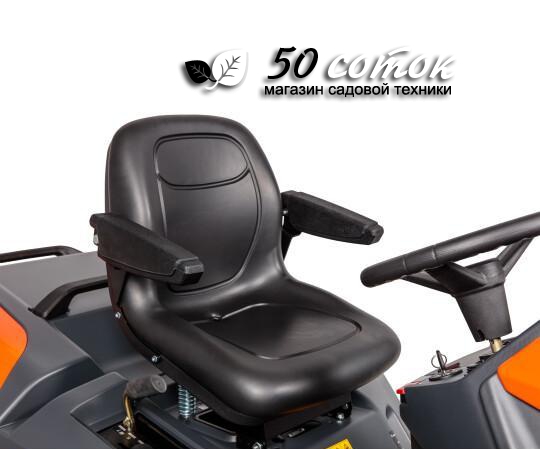 Ширина кошения 102 см позволяет обрабатывать большую площадь за один проход, а гидростатическая трансмиссия делает управление плавным и комфортным без рывков и ручного переключения передач. Высота стрижки регулируется в 7 положениях в диапазоне от 25 до 95 мм, поэтому райдер легко адаптируется под состояние газона и сезон.