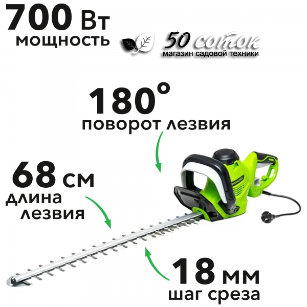 + 700 Вт, длина ножа 68 cм, поворотная рукоять|