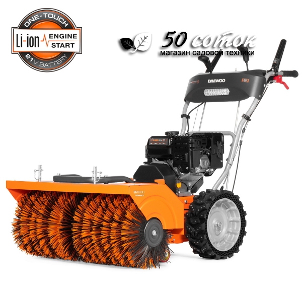 - Электрозапуск от аккумулятора 21В. Запуск двигателя путем нажатия кнопки Start. Питание от аккумулятора DAEWOO 21 В. Легкий запуск в любые морозы и возможность использования аккумулятора с инструментом линейки DAEWOO 21В.