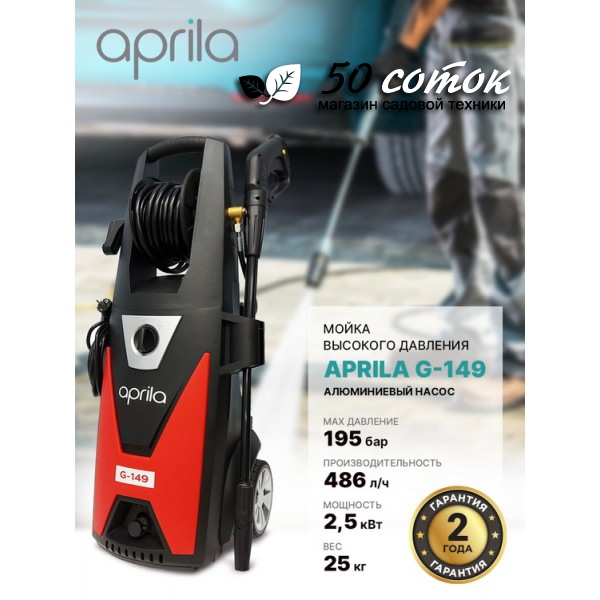 Бытовая мойка высокого давления Aprila G-149 без подогрева воды с барабаном для намотки шланга высокого давления. Для бытового использования. Мобильная минимойка Aprila G-149 высокого давления предназначена для мытья автомобилей, мебели, садовых дорожек, стен фасада, зон барбекю, патио и т.д.