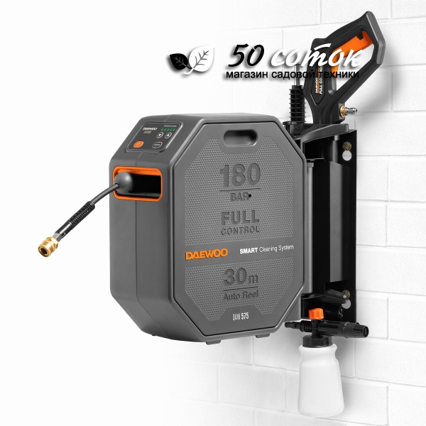 - Полный комплект для начала работы. В комплект поставки входят шланг высокого давления длиной 30м, пистолет DAEWOO FULL CONTROL, моющая насадка 3-в-1 (15/25/40), грязевая фреза, входной фильтр, коннектор для садового шланга с аквастопом, поворотный кронштейн для установки на стену.