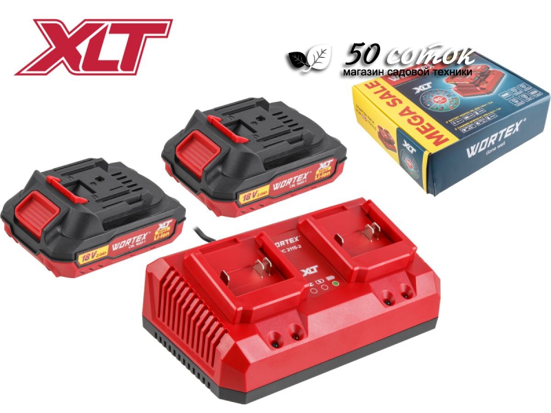 Стартовый набор для пользователей аккумуляторной линейки WORTEX XLT со скидкой в 15%! В набор входят 2 аккумуляторные батареи емкостью 2 Ач и двуслотовое зарядное устройство с силой тока в 2 А на каждый слот. Основные преимущества аккумуляторной батареи для линейки инструмента WORTEX на 1 аккумуляторе XLT: 1) Технология высокотоковых элементов INR - устойчивы к перегрузкам и имеют больший ресурс при экстремальных нагрузках. 2) Защита от полного разряда батареи - остановит инструмент, если заряд батареи очень низкий. 3) Защита от перегрузки - остановит инструмент при сильной перегрузке. 4) Защита от перегрева - предотвращает перегрев инструмента и элементов батареи. 5) Обрезиненный корпус - защита от физических воздействий и большая устойчивость на поверхности. 6) Индикатор заряда батареи - поможет легко отследить уровень заряда аккумулятора.