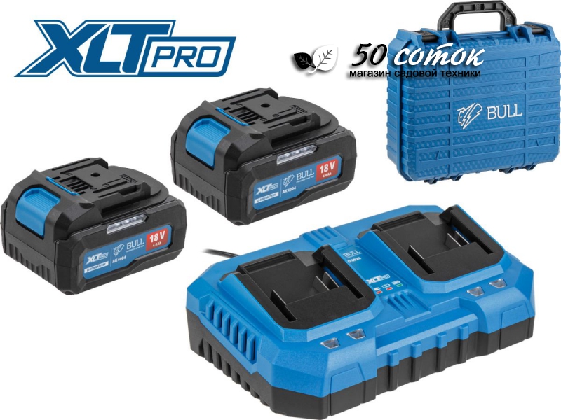Набор аккумуляторов 2х4 А*ч и зарядное 2х4 А BULL XLTpro в чем. SET, код (24278)