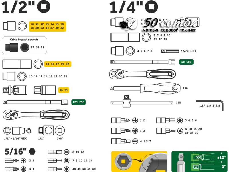 + Насадка 5/16" HEX: H7, H8, H10, H12, H14;