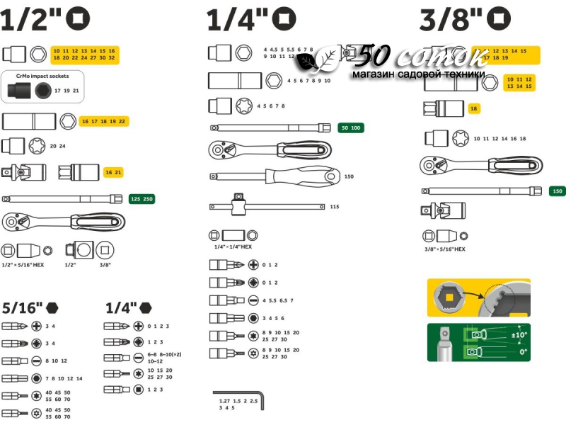 + Насадка 5/16" SL: SL8, SL10, SL12;