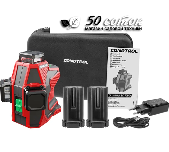 Продолжительное время работы. Condtrol Omniliner 3D G, в отличие он аналогов, оснащён Li-ion аккумуляторной батареейбольшой ёмкости (4500мАч), что значительно увеличивает продолжительность непрерывной работы прибора, избавляет от необходимости постоянно покупать батарейки, экономит ваше время и деньги.