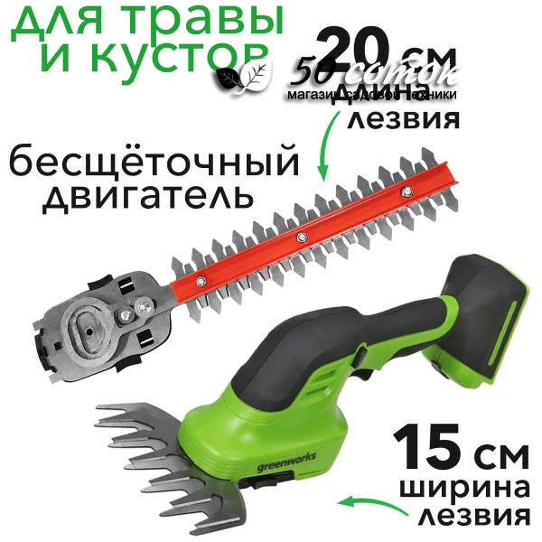 Садовые ножницы-кусторез Greenworks G24SHT 24V 1600607 аккумуляторные — отлично подойдут для ухода за газоном и кустарниками на вашем участке!