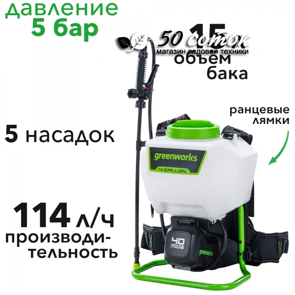 Опрыскиватель аккумуляторный Greenworks G40BPS 40V 5300007 - отличная покупка, отзывы реальных покупателей (количество голосов 51 - рейтинг: 4.1).