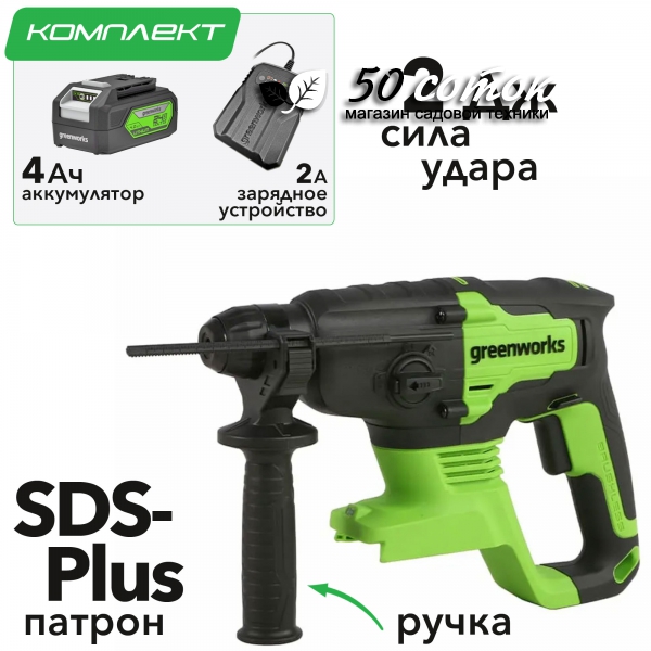 Перфоратор аккумуляторный Greenworks GD24SDS2K4 24В (в комплекте АКБ + ЗУ), код (21448)