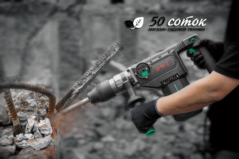 • Мощный электродвигатель 1.25 кВт и пневматический ударный механизм обеспечивают силу удара 10 Дж при частоте до 4000 уд/мин, позволяя эффективно работать с камнем, бетоном и кирпичом.