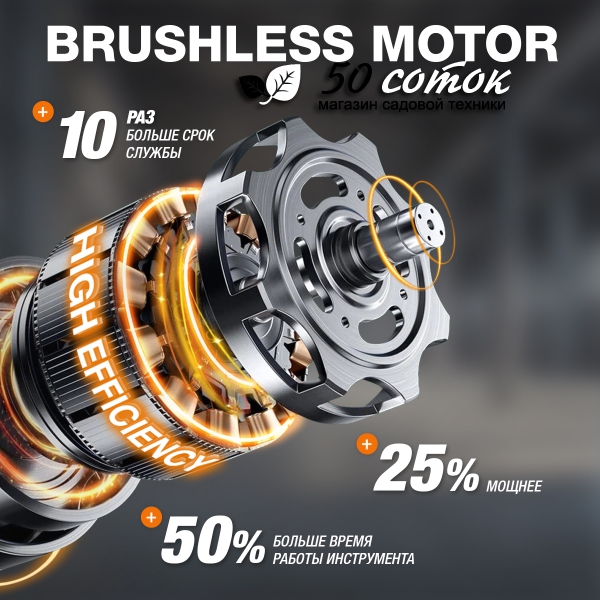 - Бесщеточный электродвигатель. За счет отсутствия коллекторно-щеточного узла он обеспечивает плавную и тихую работу, не требует сервисного обслуживания и отличается высокой производительностью и низким уровнем шума.
