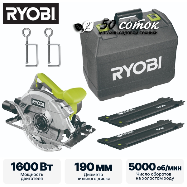 Пила циркулярная RYOBI RCS1600-KSR с направляющей, код (14466)