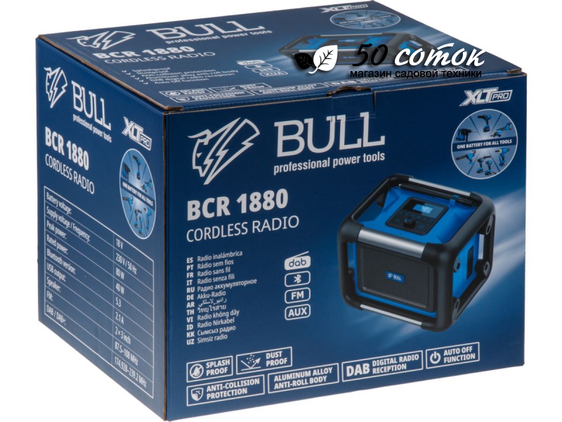 BULL BCR 1880 — это мощное и универсальное аккумуляторное радио, созданное для работы и отдыха там, где нет розетки. Этот современный мультимедийный центр объединяет в себе несколько источников звука: цифровое радио DAB и FM для кристально чистого эфира, Bluetooth 5.3 для беспроводного потокового воспроизведения музыки со смартфона и AUX-вход для прямого подключения любых устройств. Радио работает от съемных аккумуляторов BULL XLTpro 18 В, что делает его полностью мобильным и идеальным спутником на стройплощадке, в мастерской, на даче или на пикнике. Мощный звук (до 80 Вт), прочный корпус и долгая работа от батареи делают BCR 1880 надежным выбором для тех, кто ценит качественный звук и свободу от проводов.
