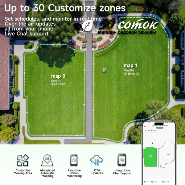 + GPS, рассчитана до 50 соток, время кошения до 210 мин|
