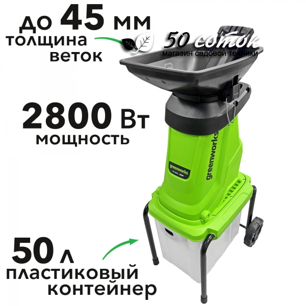 Особенности измельчителя Greenworks 220V 2800W