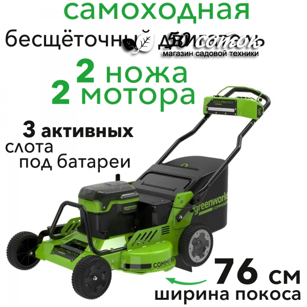 Отзывы покупателей о Самоходная аккумуляторная газонокосилка бесщеточная Greenworks 82LM30S 82V 2519207 (76 см)