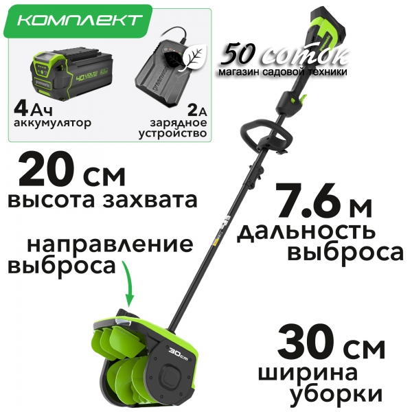 Снегоуборочная лопата бесщеточная аккумуляторная Greenworks GD40SS2 40V 2603107 (30 см) с регул. направлением выброса - отличная покупка, отзывы реальных покупателей (количество голосов 37 - рейтинг: 4.1).