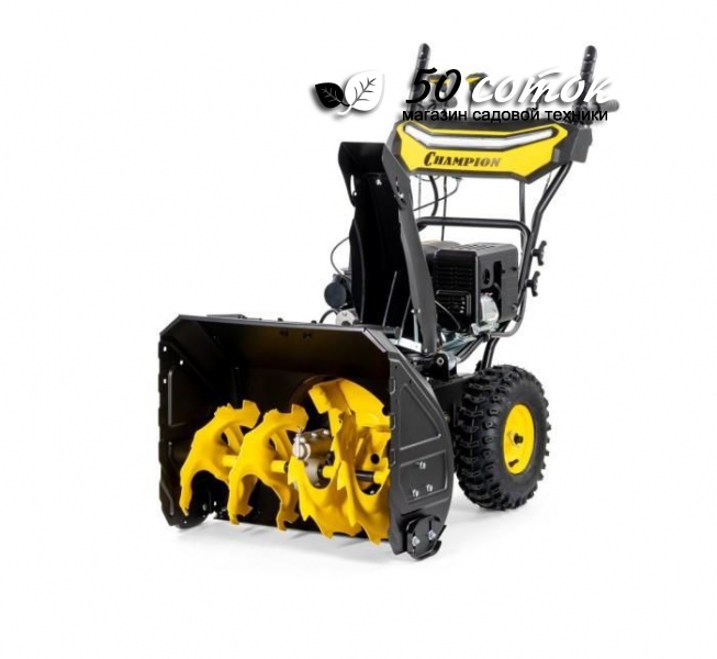 CHAMPION ST763E — бензиновый самоходный снегоуборщик для очистки от снега подъездных дорожек и придомовой территории. Модель оснащена 4-тактным двигателем мощностью 7,0 л.с. Имеет 6 скоростей вперед и 2 назад. Запуск осуществляется ручным или электростартером, при этом необходимо подключение к питающей сети 220V. Максимальная дальность выброса собранного снега — 8 м. Аппарат справляется со снежным покровом высотой до 51 см. Ширина захвата — 62 см. Наличие фары и обогрева рукояток облегчает работу в большие морозы и темное время суток.