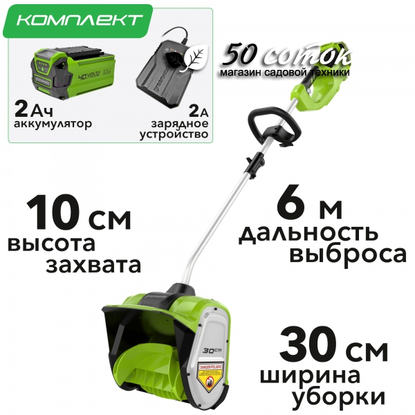 Снегоуборщик-снеголопата Greenworks GD40SSK2 40 В, код (21788)