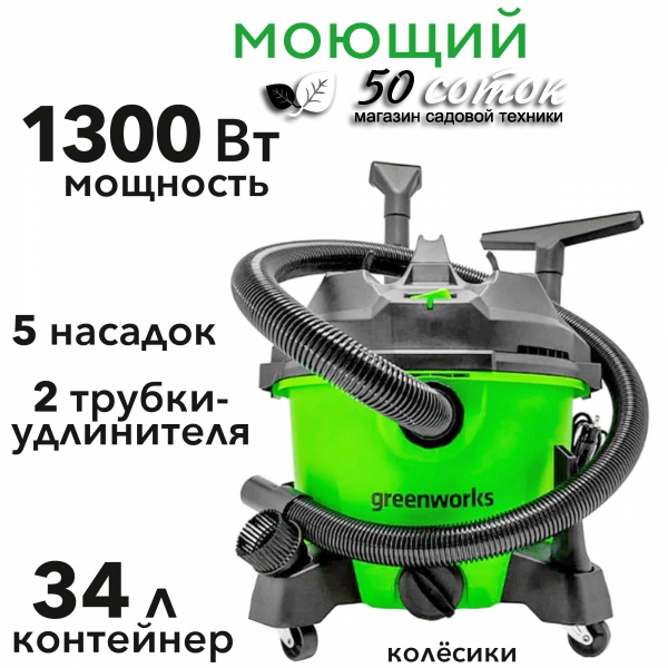Строительный пылесос электрический Greenworks G120WDW 1300Вт