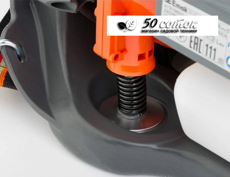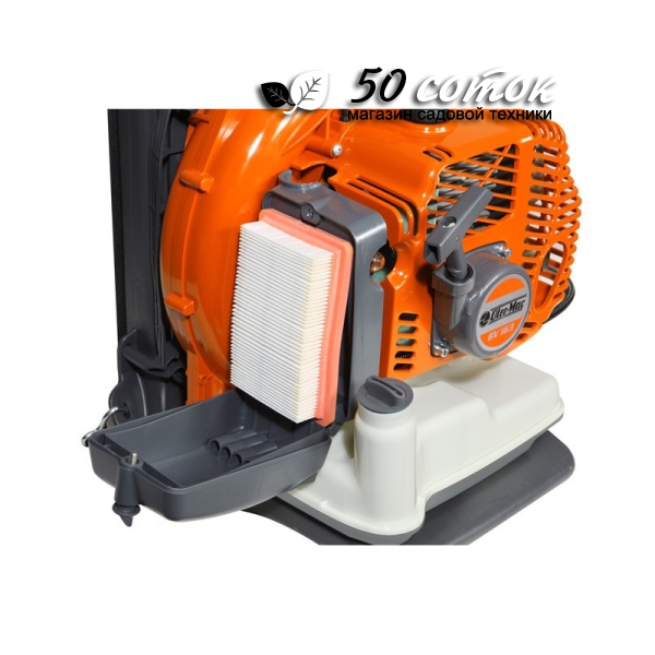 Мощность обеспечивается двухтактным двигателем Emak объемом 61,3 см3 с воздушным охлаждением, развивающим невероятную мощность 4,5 л.с. и в котором используется бумажный воздушный фильтр увеличенного размера, чтобы предотвратить преждевременное изнашиванием компонентов и обеспечить сохранение максимальной производительности в очень сухих и пыльных условиях.
